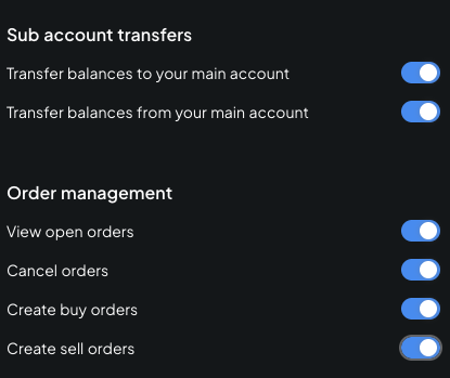 - Enable Sub account transfers & Order management permissions