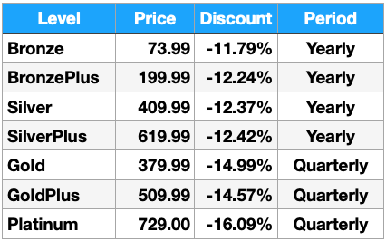 If you subscribe on the longer periods (Quarterly for Gold/Platinum, or Yearly for the others) you’ll safe some money.
